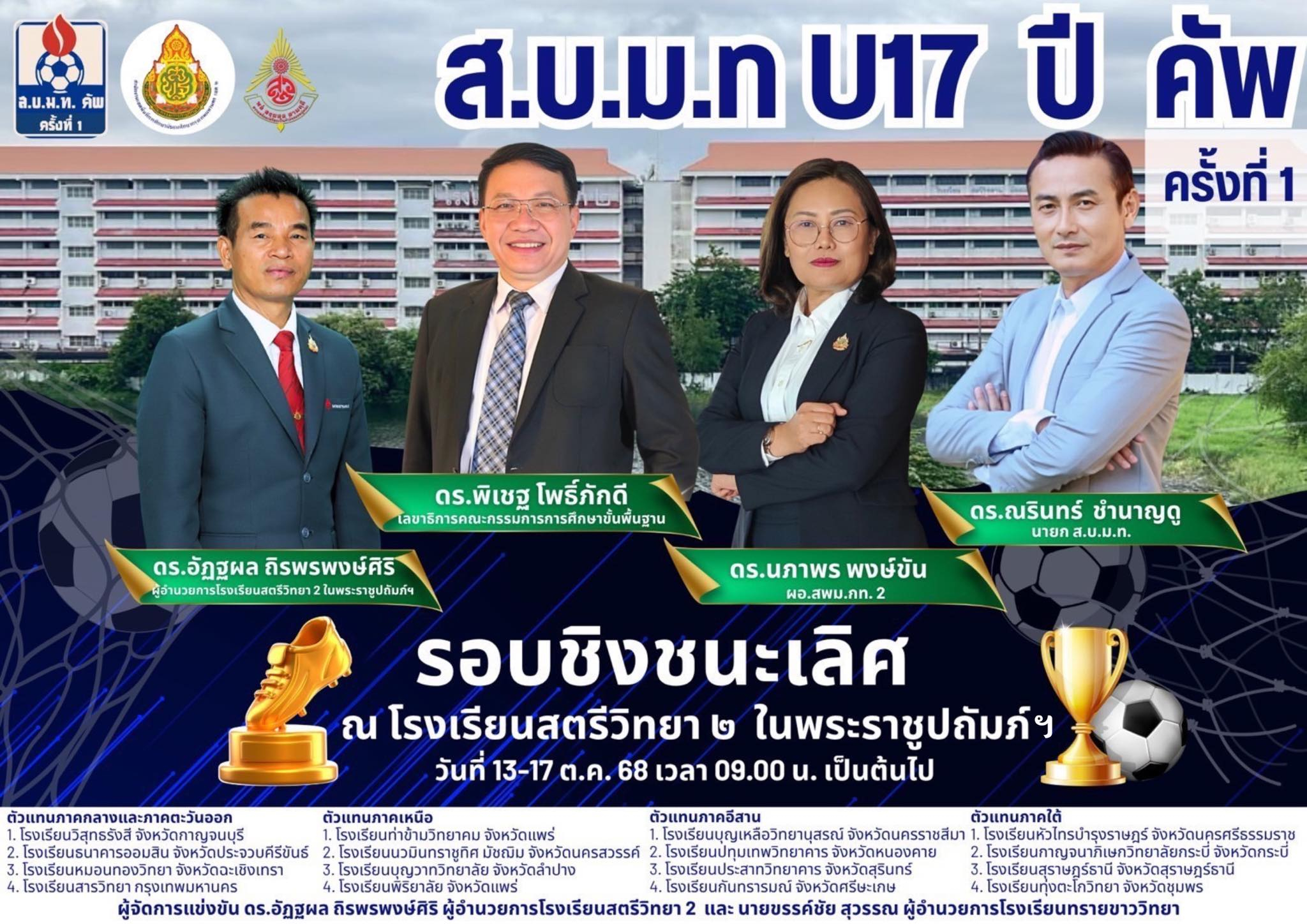 ขอเชิญทุกท่านร่วมกันเชียร์ฟุตบอล ส.บ.ม.ท U17 ปี คัพ ครั้งที่ 1