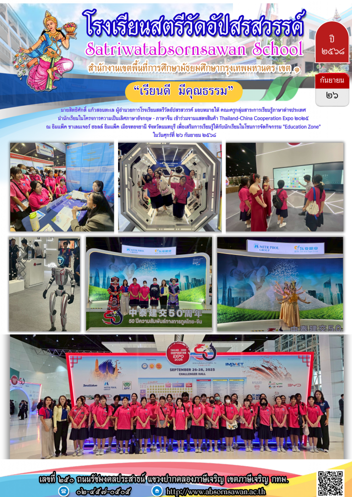 นักเรียนในโครงการความเป็นเลิศภาษาอังกฤษ - ภาษาจีน เข้าร่วมงานแสดงสินค้า Thailand-China Cooperation Expo ๒๐๒๕ ณ อิมแพ็ค ชาเลนเจอร์ ฮอลล์ อิมแพ็ค เมืองทองธานี จังหวัดนนทบุรี