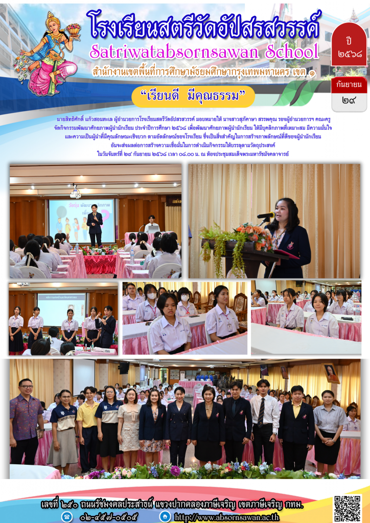 นายสิทธิศักดิ์ แก้วสอนทะเล ผู้อำนวยการโรงเรียนสตรีวัดอัปสรสวรรค์ มอบหมายให้ นางสาวสุภัคาษา สรรพคุณ รองผู้อำนวยการฯ คณะครู