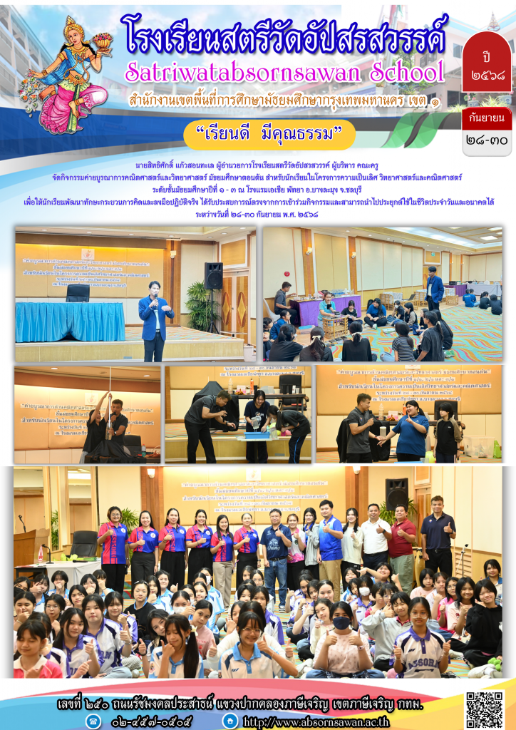 จัดกิจกรรมพัฒนาศักยภาพผู้นำนักเรียน ประจำปีการศึกษา ๒๕๖๘ เพื่อพัฒนาศักยภาพผู้นำนักเรียน ให้มีบุคลิกภาพที่เหมาะสม มีความมั...