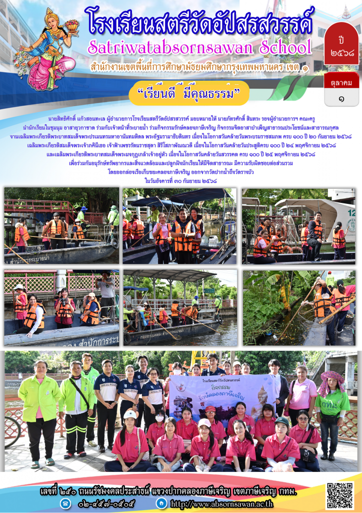 นำนักเรียนในชุมนุม อาสายุวกาชาด ร่วมกับเจ้าหน้าที่ระบายน้ำ ร่วมกิจกรรมรักษ์คลองภาษีเจริญ กิจกรรมจิตอาสาบำเพ็ญสาธารณประโยชน์แ...
