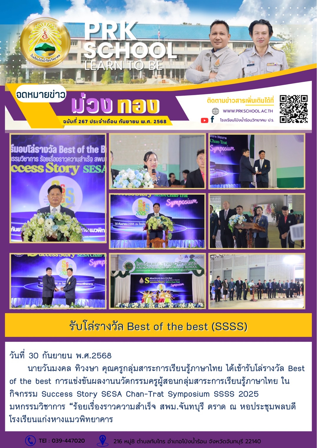 นายวันมงคล ทิวงษา คุณครูกลุ่มสาระการเรียนรู้ภาษาไทย ได้เข้ารับโล่รางวัล Best