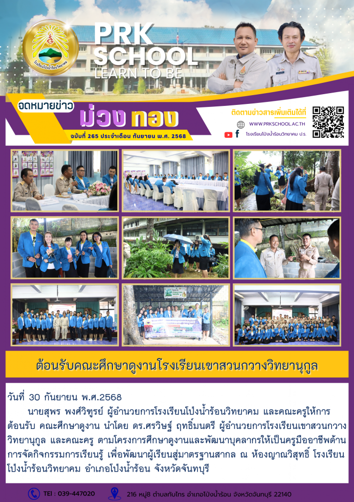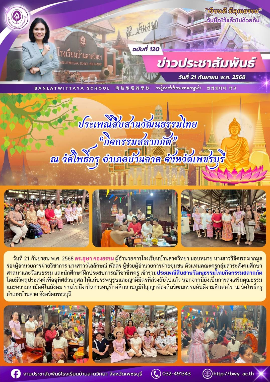 วันที่ 21 กันยายน พ.ศ. 2568 ดร.อุษา กองธรรม ผู้อำนวยการโรงเรียนบ้านลาดวิทยา มอบหมาย นางสาววิจิตพร มากมูล รองผู้อำนวยการฝ่ายวิชาการ นางสาววไลลักษณ์ พัสดร ผู้ช่วยผู้อำนวยการฝ่ายชุมชน ตัวแทนคณะครูกลุ่มสาระสังคมศึกษา ศาสนาและวัฒนธรรม และนักศึกษาฝึกประสบก...