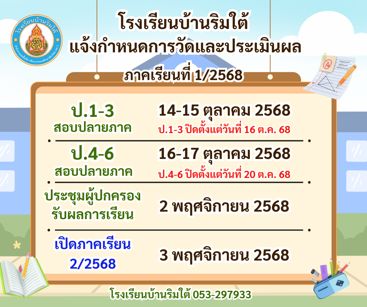 แจ้งกำหนดการวัดและประเมินผล ภาคเรียนที่ 1 ปีการศึกษา 2568 📝